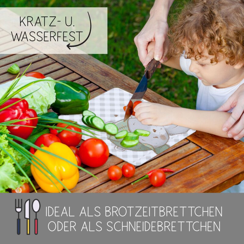 Dieses Frühstücksbrettchen sorgt für Freude am Frühstückstisch und ist ideal für den täglichen Einsatz. Hergestellt aus lebensmittelechtem Kunststoff, bietet es eine robuste und stabile Oberfläche. Die weiße Rückseite eignet sich ideal zum Schneiden, während die Vorderseite mit ihrem kratzfesten Dekor kleine Kinder begeistert. Obwohl das Brettchen sehr widerstandsfähig ist, empfehlen wir die Rückseite für Schneidearbeiten zu verwenden, um das Design zu schonen.