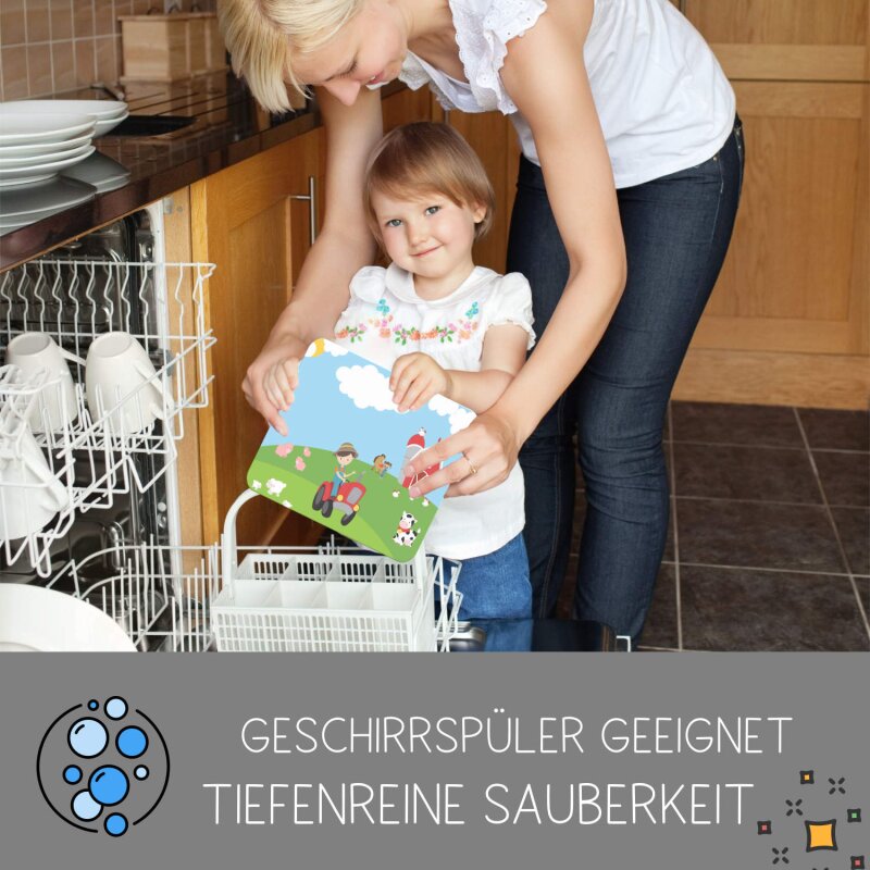 Dank seiner Spülmaschinen- und Mikrowellenfestigkeit ist dieses Brettchen besonders pflegeleicht und optimal für den täglichen Gebrauch geeignet – ein perfektes Accessoire für jede Kinderküche.