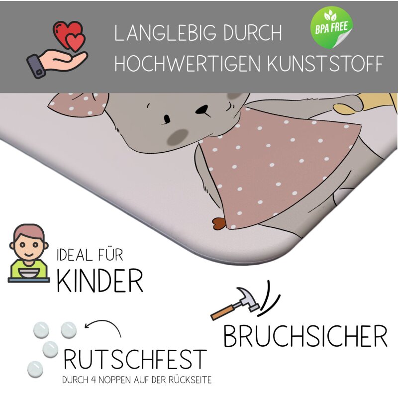 Dieses personalisierte Frühstücksbrettchen sorgt schon morgens für strahlende Gesichter am Tisch! Robust und stabil gefertigt aus lebensmittelechtem Kunststoff, ist es nicht nur langlebig, sondern auch besonders alltagstauglich. Die weiße Rückseite ist ideal zum Schneiden, während die bedruckte Vorderseite mit einem lustigen, kratzfesten Design überzeugt. Der aufgebrachte Name macht das Brettchen einzigartig und lädt dazu ein, immer wieder neue Details zu entdecken. Perfekt geeignet für die Spülmaschine und Mikrowelle – einfach praktisch!