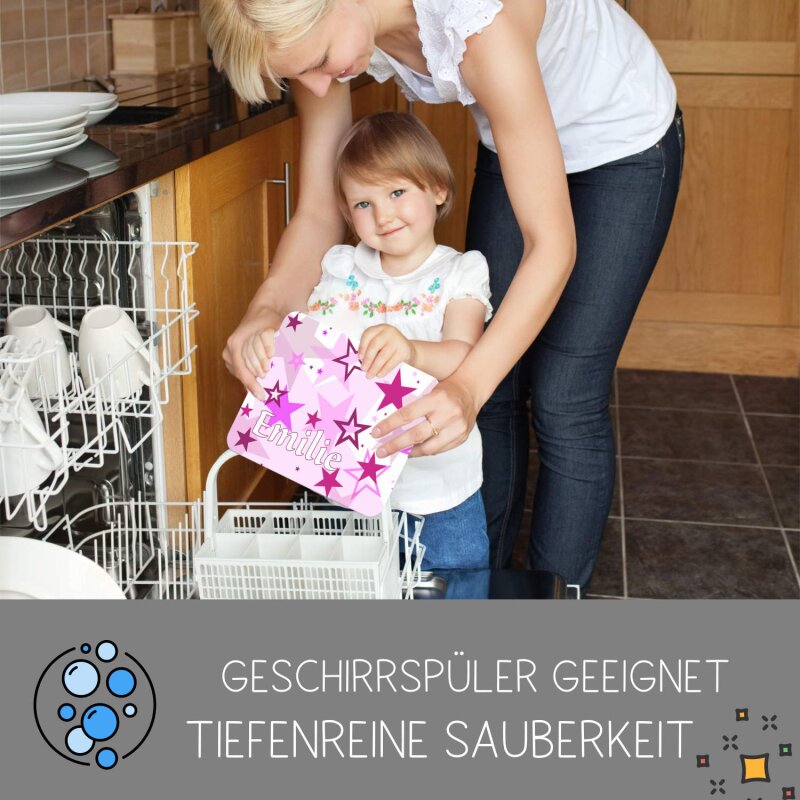 Dieses personalisierte Frühstücksbrettchen sorgt schon morgens für strahlende Gesichter am Tisch! Robust und stabil gefertigt aus lebensmittelechtem Kunststoff, ist es nicht nur langlebig, sondern auch besonders alltagstauglich. Die weiße Rückseite ist ideal zum Schneiden, während die bedruckte Vorderseite mit einem lustigen, kratzfesten Design überzeugt. Der aufgebrachte Name macht das Brettchen einzigartig und lädt dazu ein, immer wieder neue Details zu entdecken. Perfekt geeignet für die Spülmaschine und Mikrowelle – einfach praktisch!