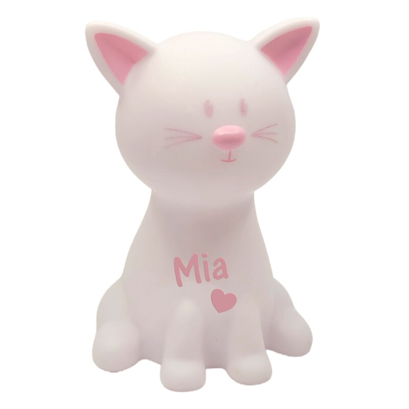 Das Nachtlicht Katze ist nicht nur ein Hingucker im Kinderzimmer, sondern auch praktisch. Es wirft ein sanftes Licht auf den Nachttisch und wechselt selbstständig zwischen 4 Farben (rot, grün, blau und lila). Das Besondere an diesem Nachtlicht ist die Personalisierung mit dem Namen Deines Kindes. So wird es zu einem einzigartigen Accessoire im Kinderzimmer.