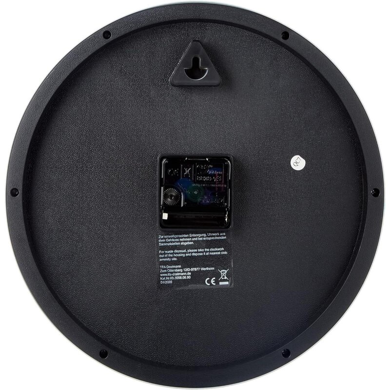 Im äußeren Ring sind die Minuten mit Punkten gekennzeichnet und in Fünferschritten mit Zahlen versehen. Im mittleren Ring sind die Stunden von 1 bis 12, im inneren Ring von 13 bis 24 Uhr aufgedruckt. In kleinen Kreissymbolen werden die viertelstündlichen Abstände (viertel nach, halb, viertel vor und volle Stunde) angezeigt.