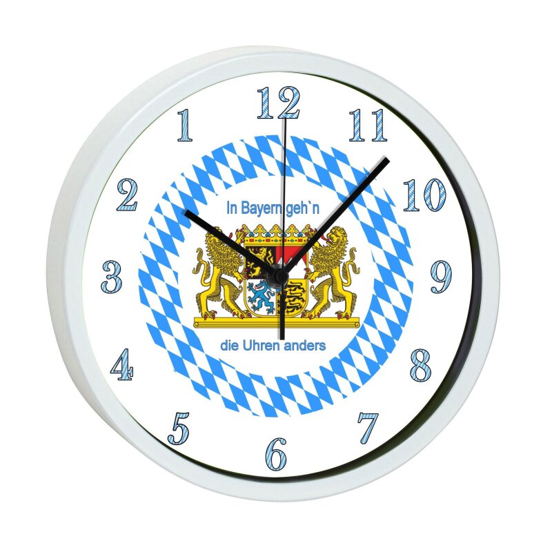 Kinder Wanduhr laufruhig mit bunten Rahmen Bayern