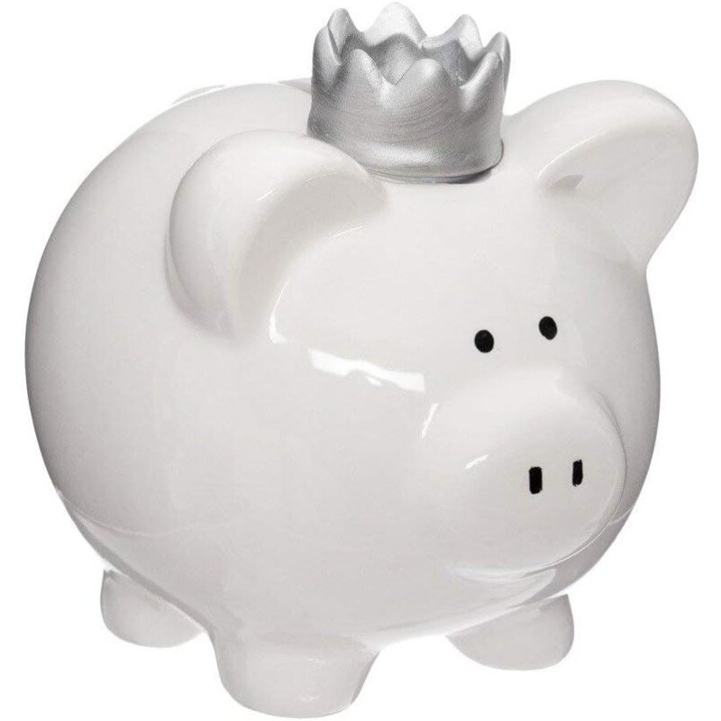 Keramik-Spardose Schwein mit Krone – Klassische Eleganz in Weiß