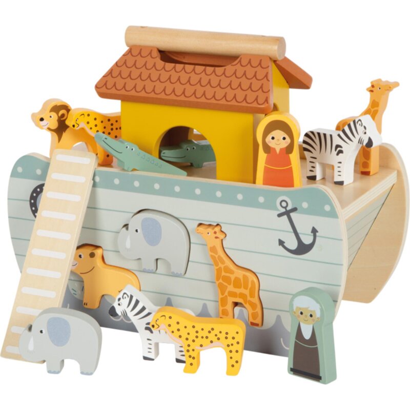 Willkommen an Bord der Arche Noah! Dieses robuste Holzsteckboot bietet nicht nur ein vielseitiges Steckspiel, sondern auch eine faszinierende Spielwelt für abwechslungsreichen und langlebigen Spiel- und Lernspaß.