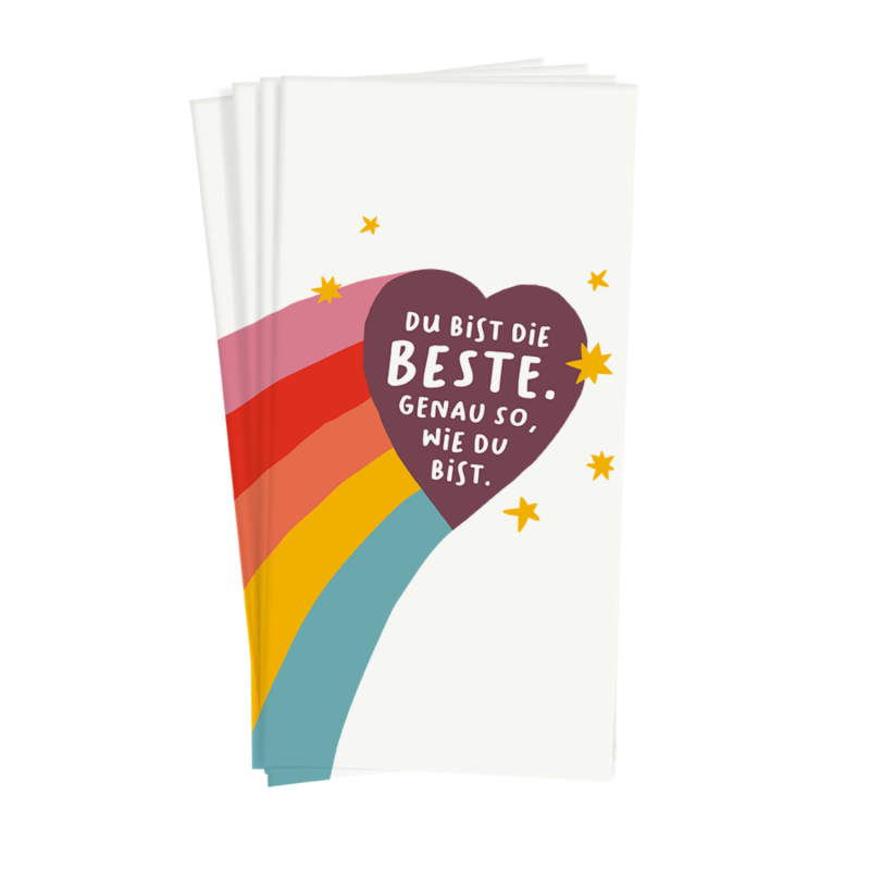 Für Freudentränen, Nieser oder um schnell mal etwas sauber zu zaubern – unsere neuen Taschentücher sind das perfekte Geschenk, das immer ein Lächeln ins Gesicht zaubert. Ob für Mama, Papa oder Freunde, diese liebevoll gestalteten Taschentücher sind ein kleines Päckchen Glück, das man im Alltag stets gut gebrauchen kann. Mit ihren lebensmittelechten Druckfarben und nachhaltigem Material sind sie nicht nur praktisch, sondern auch umweltfreundlich.